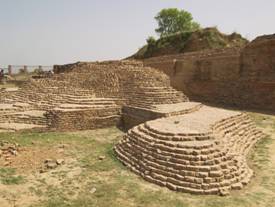 Bhim-Gaja, the highest place at the site. The ASI conducted an excavations here, in the year 1939-40,1965-66 and 1970-01 in order to reveal the details of the structure traced by Cunningham. Excavation revealed substantial part of the plan of the temple built in three different phases. Initially, the temple appear to have started as solid brick built high platform surmounted possibly by sanctum during Gupta period but later, two encircling walls probably in 6th-7th century AD were laid around it covering it finally into in extensive and impressive