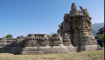 Standing in the midst to the cultivated fields on the bank of a small stream, known as Khiru Ganga, this pyramidical shrine, known as pahmnas shikhar temple, represents the earliest extent developed temple of central Himayala. Rectangular on plan, the elevation of the shikhara is composed of receding horizontal courses of projected and sank moulding called pidha, hence, known as pidha deval in some architectural canons. The temple is presently without any image.